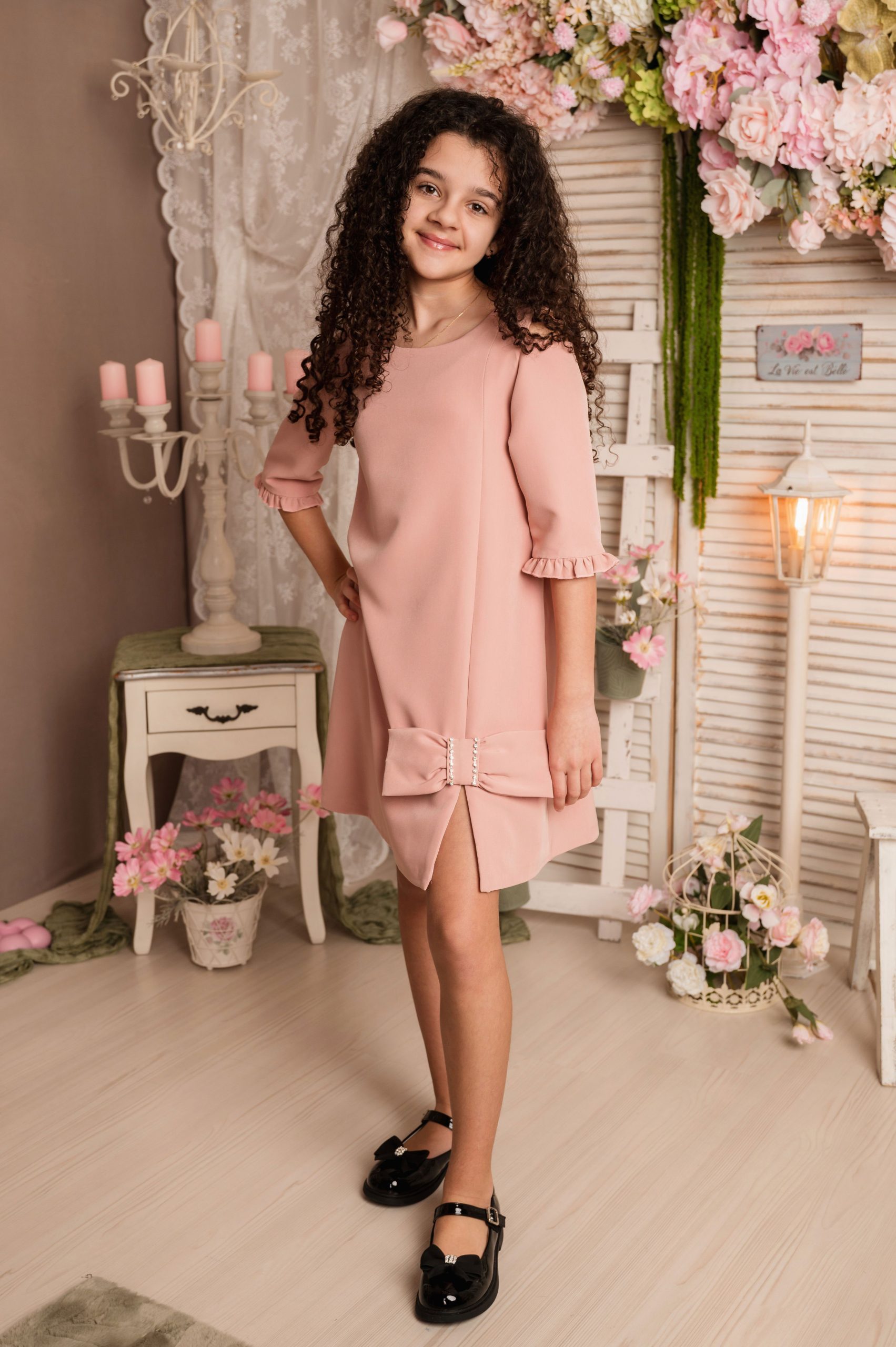 Rochie diafană și elegantă din stofă subțire elastică (100% poliacril), cu un croi în formă de A, este creată pentru a se potrivi armonios oricărei siluete de fetițe, oferindu-i libertate de mișcare și un look de poveste.