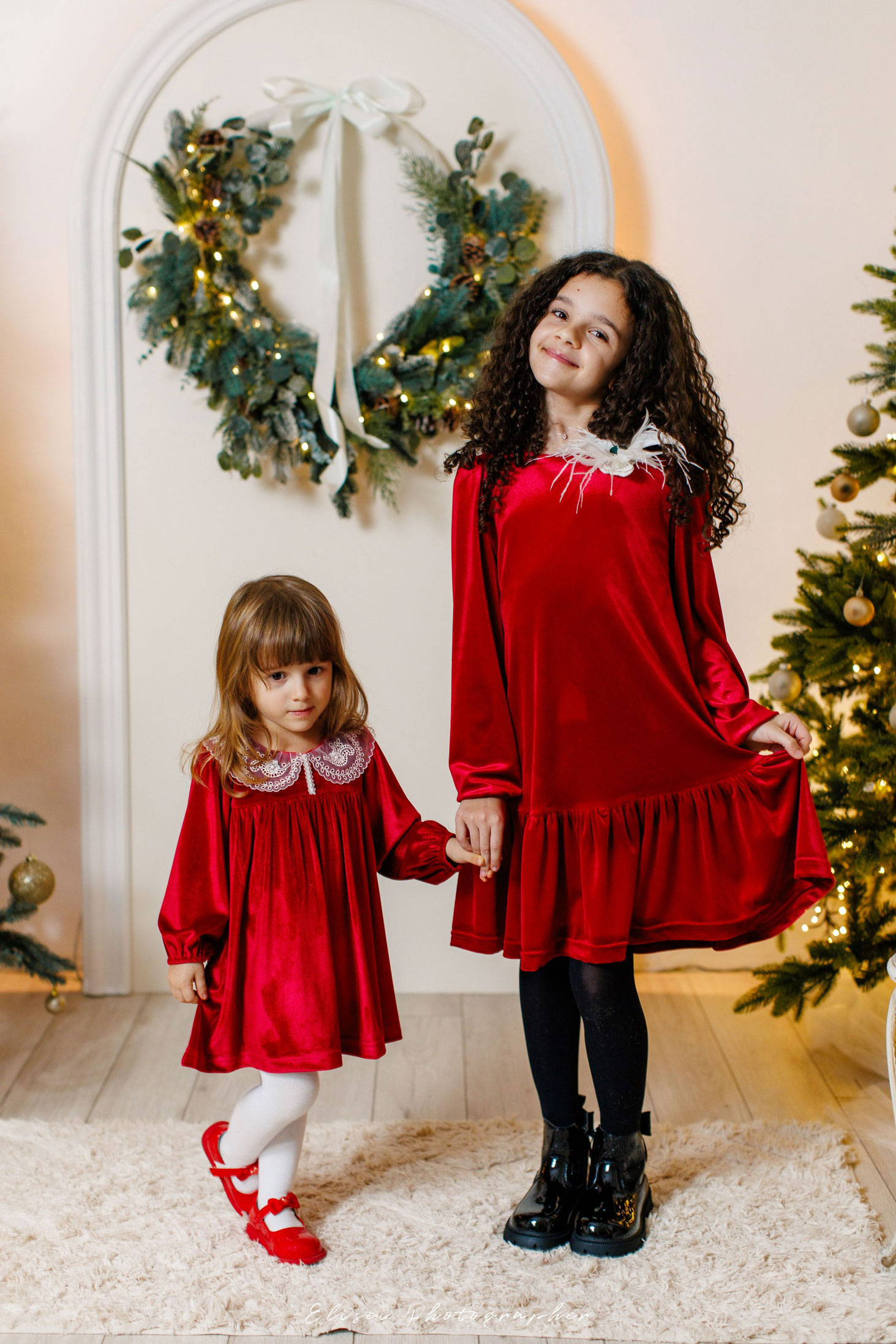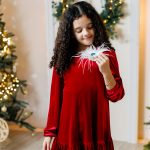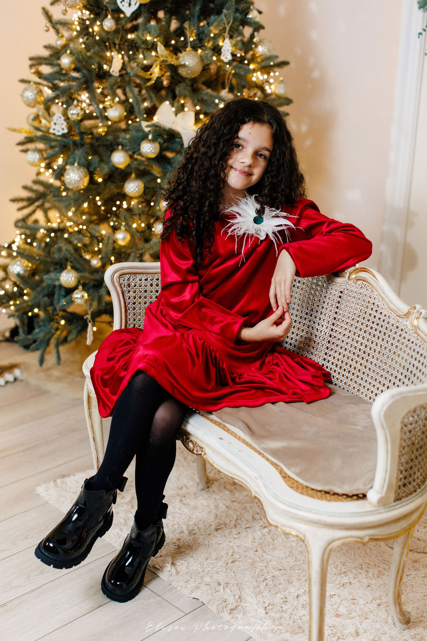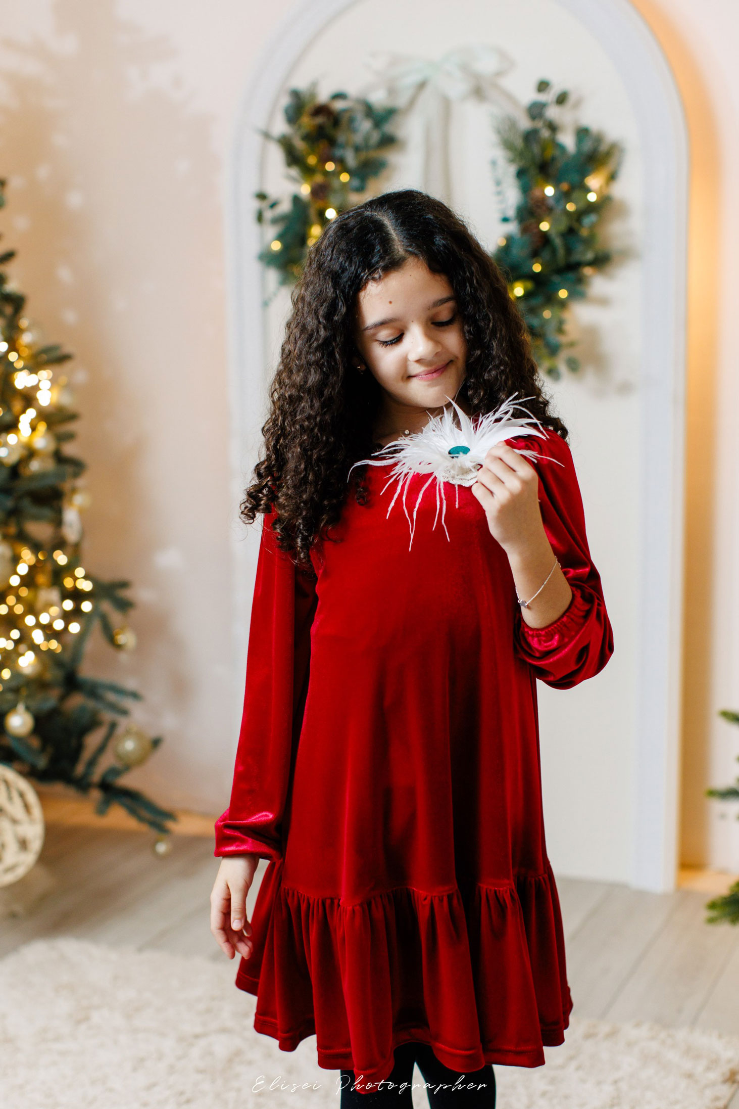 Această rochie din catifea elastică (100% polyacril), perfectă pentru sărbătorile de iarnă, îmbină eleganța cu confortul.